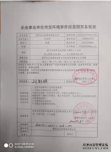 應(yīng)急預(yù)案備案函 突發(fā)環(huán)境應(yīng)急預(yù)案備案登記表 博羅縣環(huán)境保護(hù)局 2021-6-11
