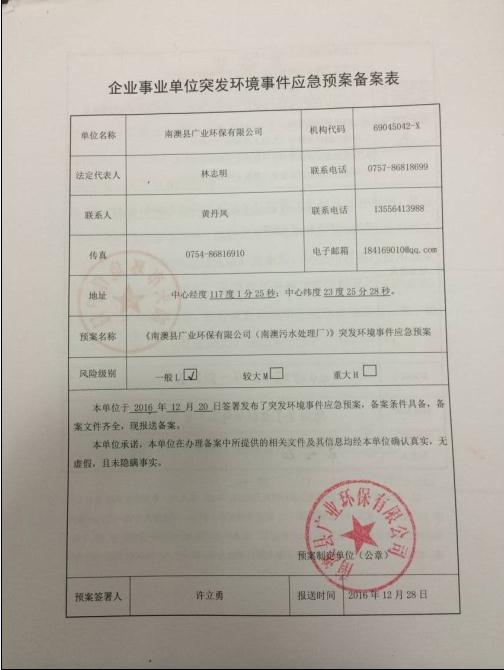 | 廢水 | NAWS-029 | 東經(jīng):117度01分25.7秒;北緯:23度25分58秒 | COD | ① | 全天連續(xù)監(jiān)測 | |